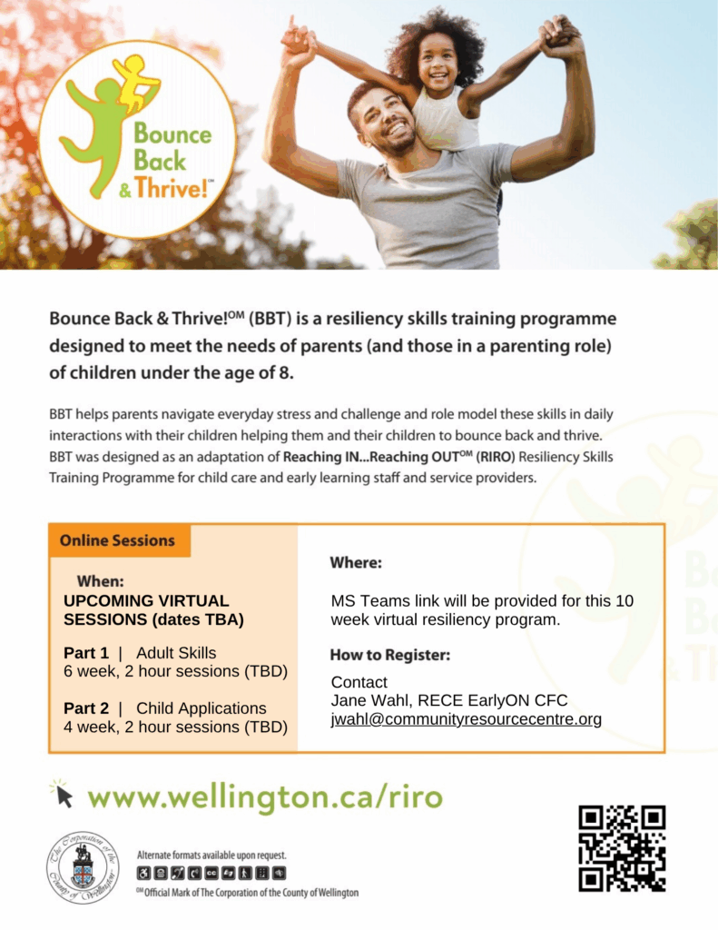 Our dedicated EarlyON staff will continue to support families, including answering your questions about parenting and child development. To access this support, please contact: